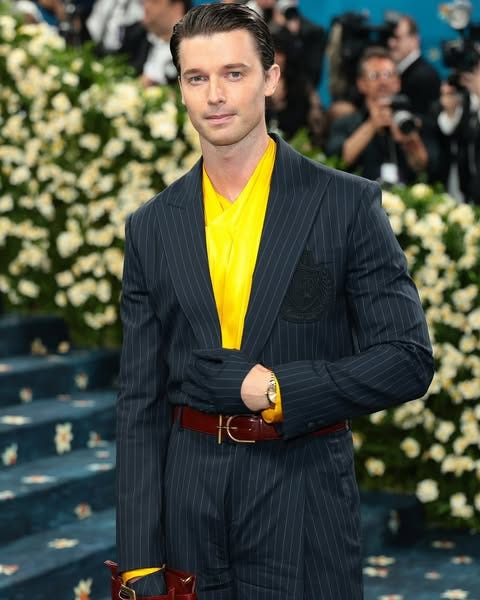 Patrick Schwarzenegger in Balmain. This wasn’t everyone’s favourite in my office, but I had a soft spot for Schwarzenegger’s endearing style. From the wide leg trousers to the yellow shirt, and accessorising with a burgundy belt and belt-bag, this look proved Schwarzenegger is anything but his polarising White Lotus character.